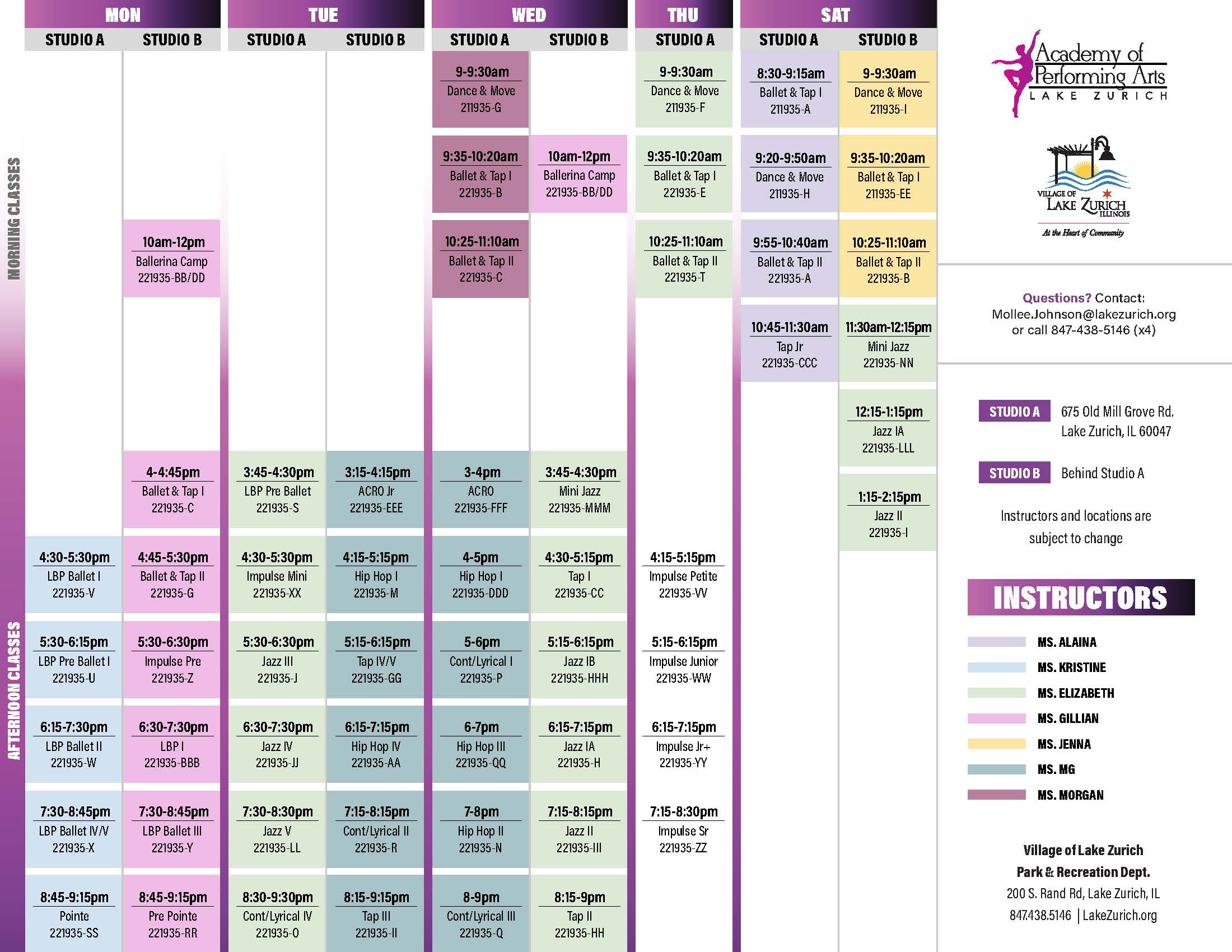 The Academy of Performing Arts Lake Zurich offers students an exceptional and progressive dance curriculum. We have class offerings appropriate for student’s two-and-half years old through elementary school, high school and beyond.