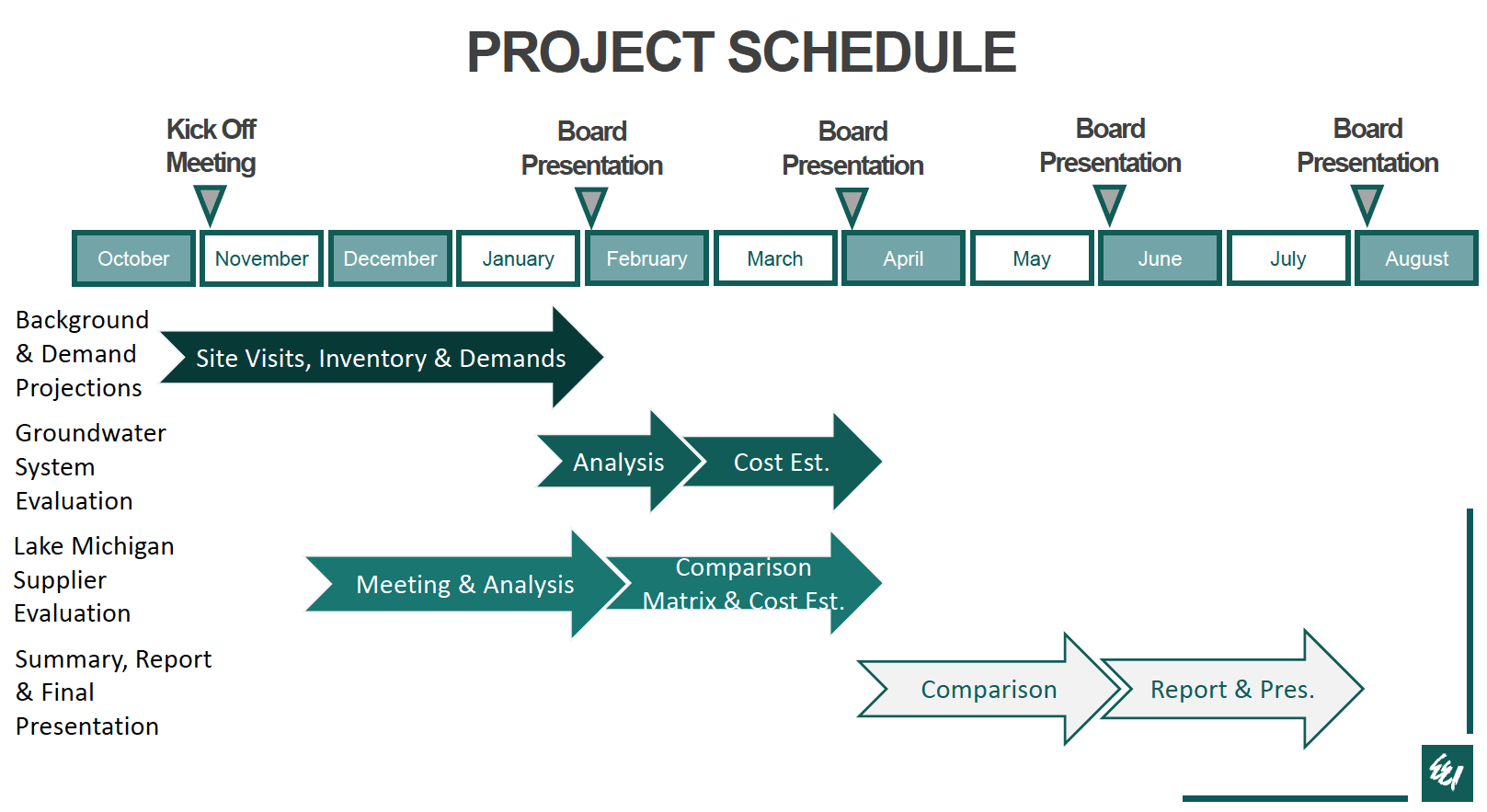 • In October 2020, the Village contracted with Engineering Enterprises, Inc. for a comprehensive study to consider the long-term viability of the deep well system currently in place and identifying potential partners along with alternative Lake Michigan water supplies that were not considered in the 2012 study.