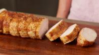 Remove the tenderloins from the marinade and discard the marinade but leave the herbs that cling to the meat. Sprinkle the tenderloins generously with salt and pepper. Heat 3 tablespoons olive oil in a large oven-proof saute pan over medium-high heat. Sear the pork tenderloins on all sides until golden brown. Place the saute pan in the oven and roast the tenderloins for 10 to 15 minutes or until the meat registers 137 degrees F at the thickest part. Transfer the tenderloins to a platter and cover tightly with aluminum foil. Allow to rest for 10 minutes. Carve in 1/2-inch-thick diagonal slices. The thickest part of the tenderloin will be quite pink (it's just fine!) and the thinnest part will be well done. Season with salt and pepper and serve warm, or at room temperature with the juices that collect in the platter.